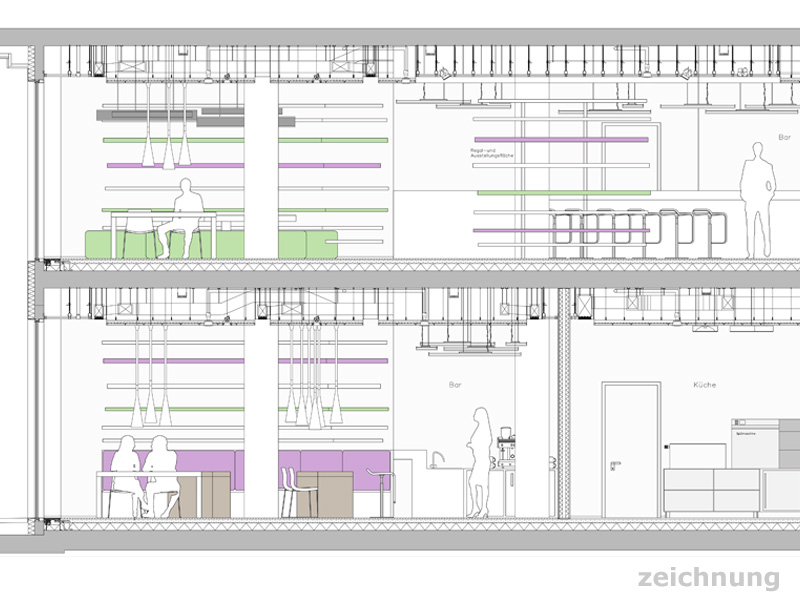 Aufgabe war es ein ein Ladenkonzept zum Thema „Lifestyle“ zu entwickeln. Es war von einer 24 Stunden Nutzung auszugehen und dementsprechend Verkauf und Bewirtung zu koordinieren.